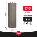 Termo eléctrico de piso monofásico de 246 litros marca Rheem, con esmaltado de porcelana Bi-Capa en el estanque y ánodo de magnesio protegen su interior y que alargan su vida útil. ?