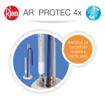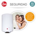 Los termos murales Rheem son durables y seguros. Su esmalte Zafiro Xpand de baja adherencia al sarro protege el tanque interno y las resistencias de acero inoxidable, alargando la vida útil del termo eléctrico. Cuenta además con ánodo de magnesio resistido AR Protect X4, sistema electroestático que atrae partículas de magnesio a las paredes internas del tanque, evitando su deterioro y aumentando su vida útil.