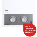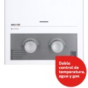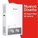 Nuevo calefón ionizado de tiro natural de 8 litros con diseño renovado, más moderno y seguro. Cuenta con doble control de temperatura, agua y gas, para lograr la temperatura deseada sin esfuerzo.