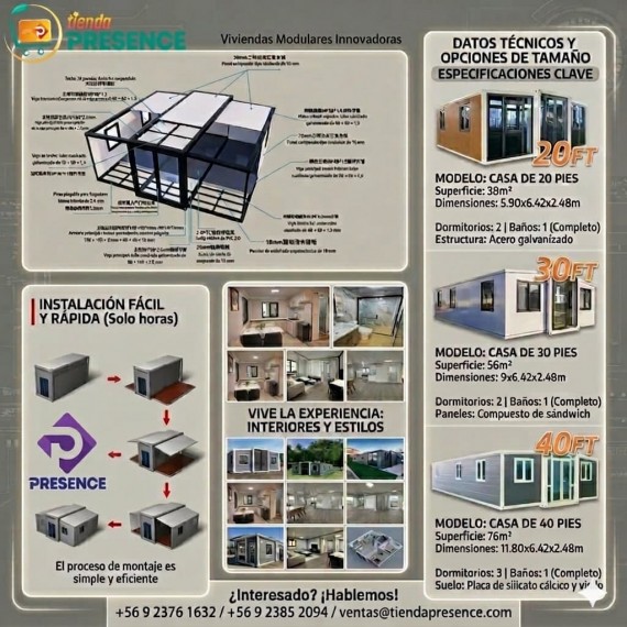 Dormitorios: 2 | Baños: 1 (Completo) Paneles: Compuesto de sándwich